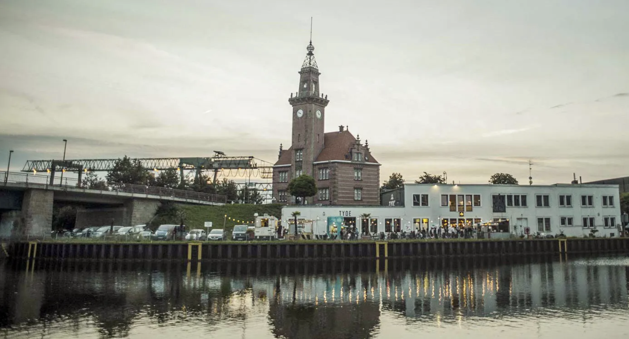 Tyde Studios, located at the inland Port of Dortmund. The venue has dining and dance areas, a bar and a separate playroom upstairs for children. It also features a lovely outdoor area directly at the canal, though you can't jump in the water!